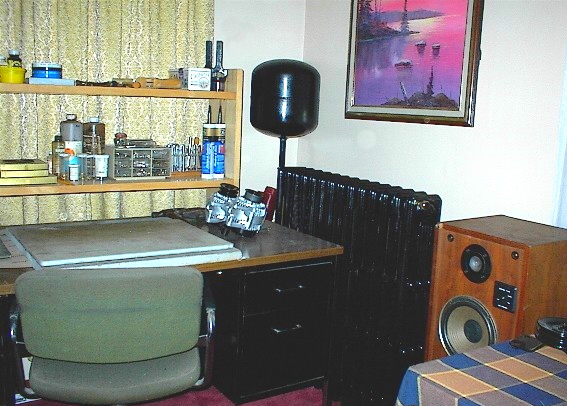 David's leather working desk where he made his own belts, wallets, card holders, bicycle saddle bags and many other leather products.