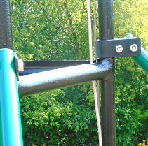 The green guy poles are top rails for a chain link fence. Only green was on sale, $8.50 ea. @ Home Hardware, Napanee.